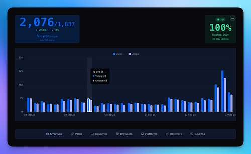 โข ๐ Added tooltips to some elements that might be confusing on what they are when your on your site page. Shipped this yesterday, and... September 30th, 2025 changelog