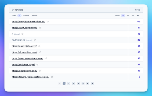 โข โญ๏ธ You can now filter referrers by internal and external. In addition to that you can also add change the amount of data you... August 31st, 2025 changelog